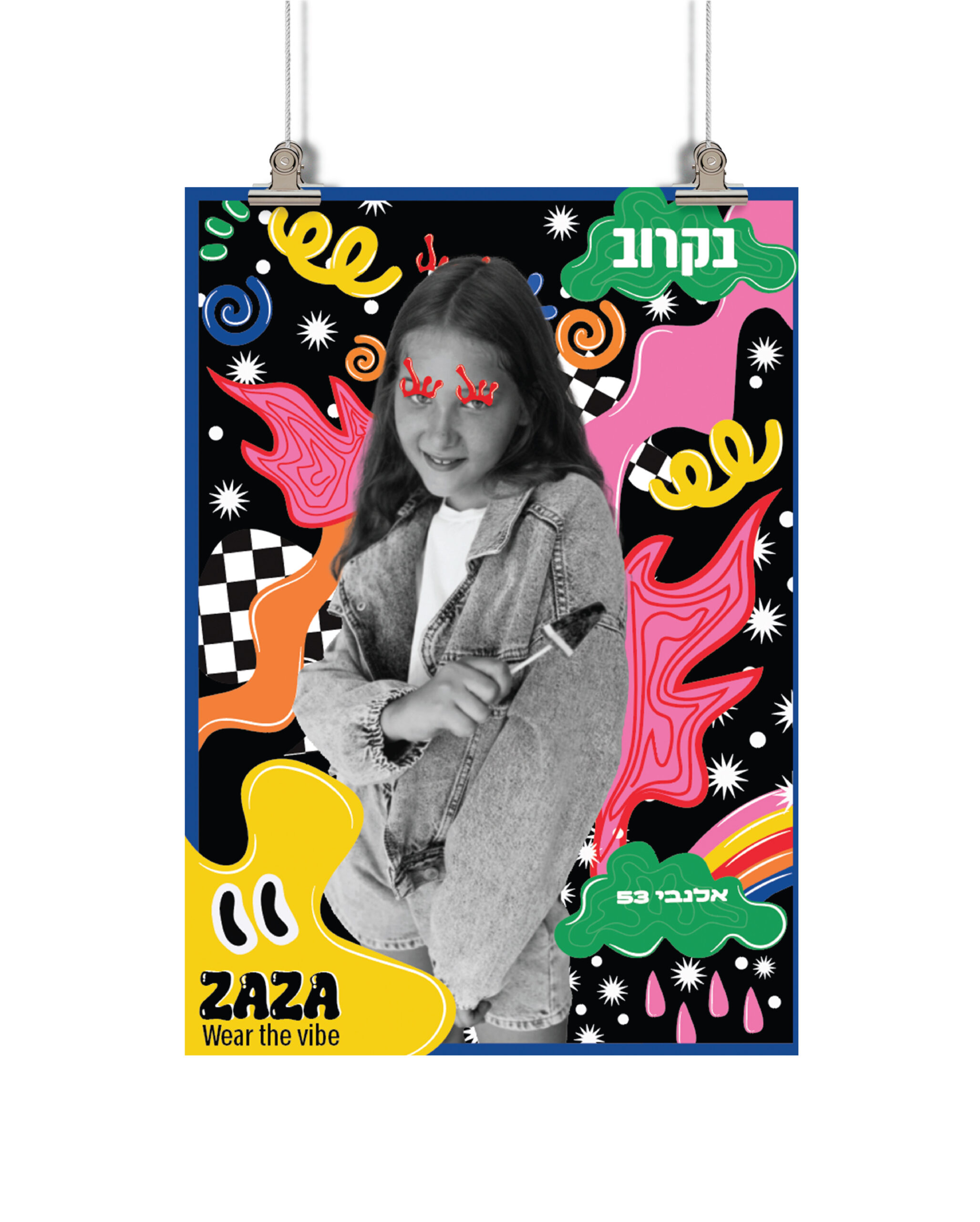 מותג ZAZA נבנה סביב אנרגיה צעירה, שובבה וצבעונית שמעודדת ביטוי עצמי וסטייל אישי. השפה הגרפית משלבת אלמנטים מצוירים, צבעים עזים ודימויים דינמיים שמרגישים כמעט כמו משחק. כל עיצוב משדר תחושת תנועה, חופש ו־vibe ייחודי – בדיוק כמו הילדים שלובשים את ZAZA.